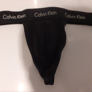 Today I am wearing a black Calvin Klien thong.